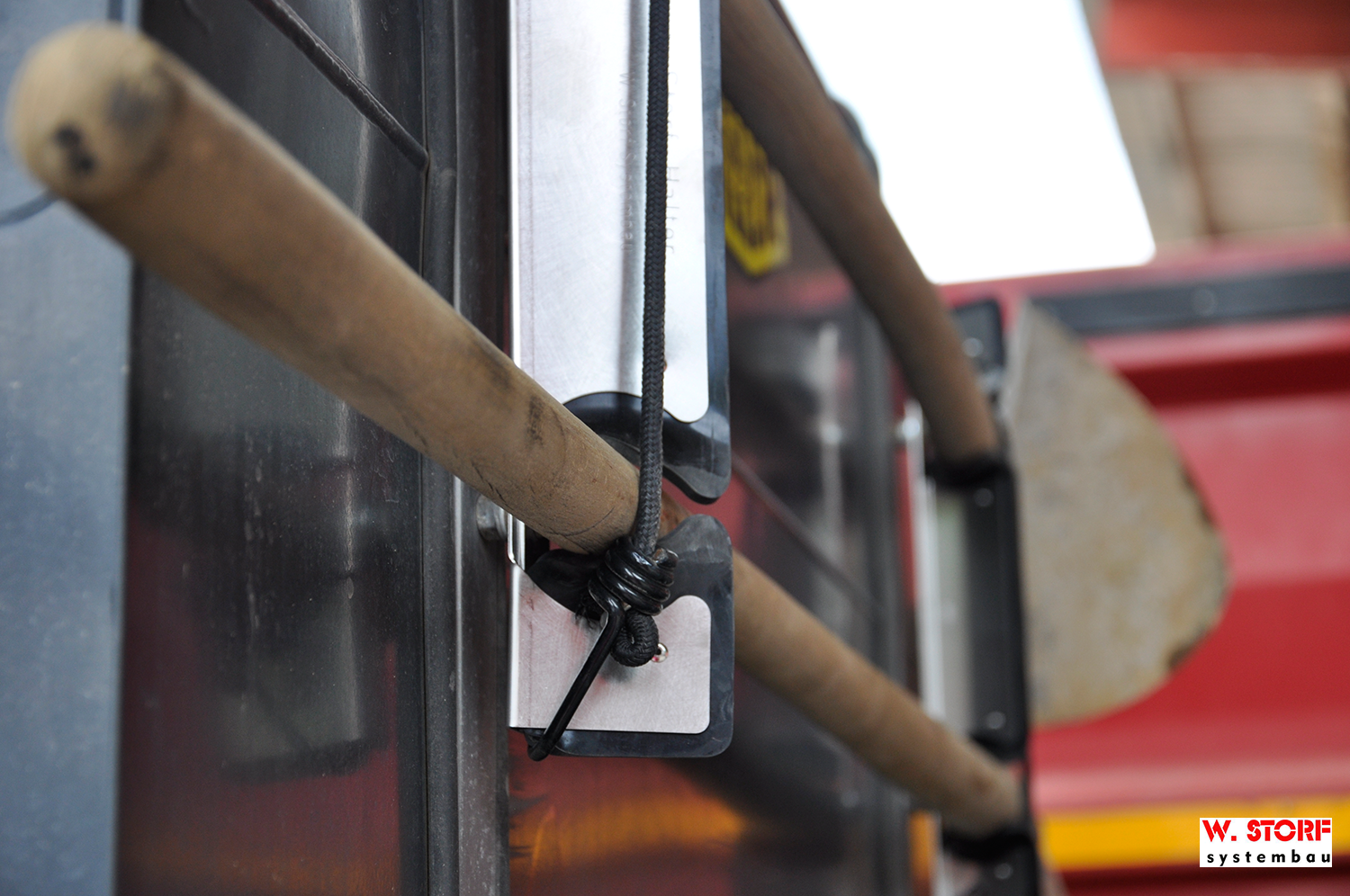 Der Stielgerätehalter wird im Satz inkl. Befestigungsmaterial geliefert. Einmal am Fahrzeug montiert, sind die Gerätschaften ordentlich aufgeräumt und schnell für die Arbeit griffbereit.